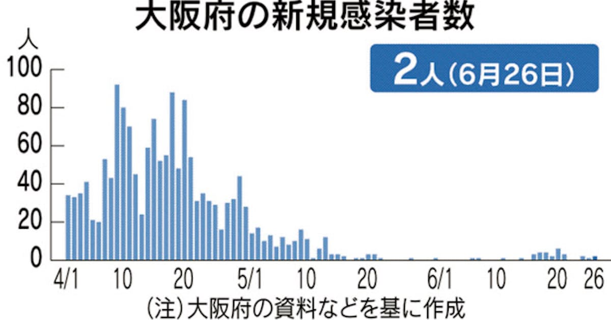 新型コロナ 大阪府 26日の新規感染者は2人 30代の男性 日本経済新聞