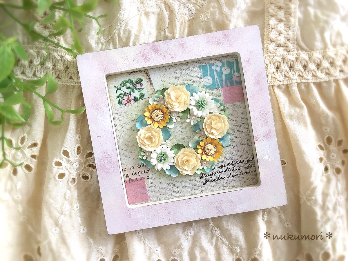 可愛いリースのミニフレーム プチギフト ペーパークラフト 花 ハンドメイドマーケット Minne