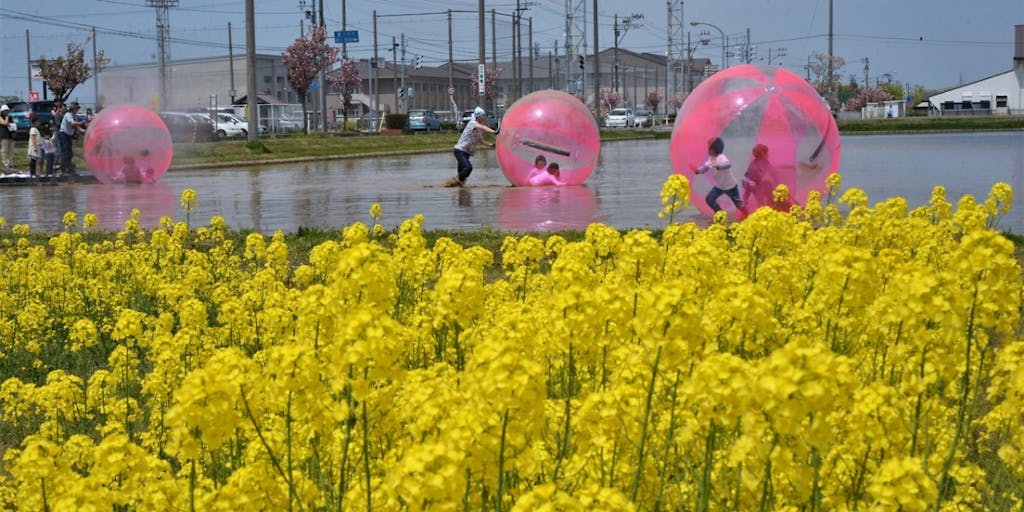 菜の花キャンプで週末移住体験 三川町の花 菜の花を見ながら ゆるりと過ごす 語らいながら お祭りを楽しみながら 非日常を味わうー