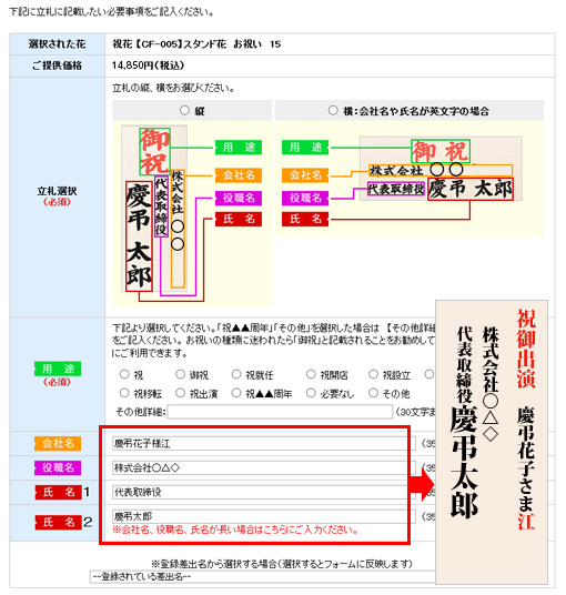 立札の記載例 フローラ花よし 創業60年の信頼と実績のフラワーギフト専門店